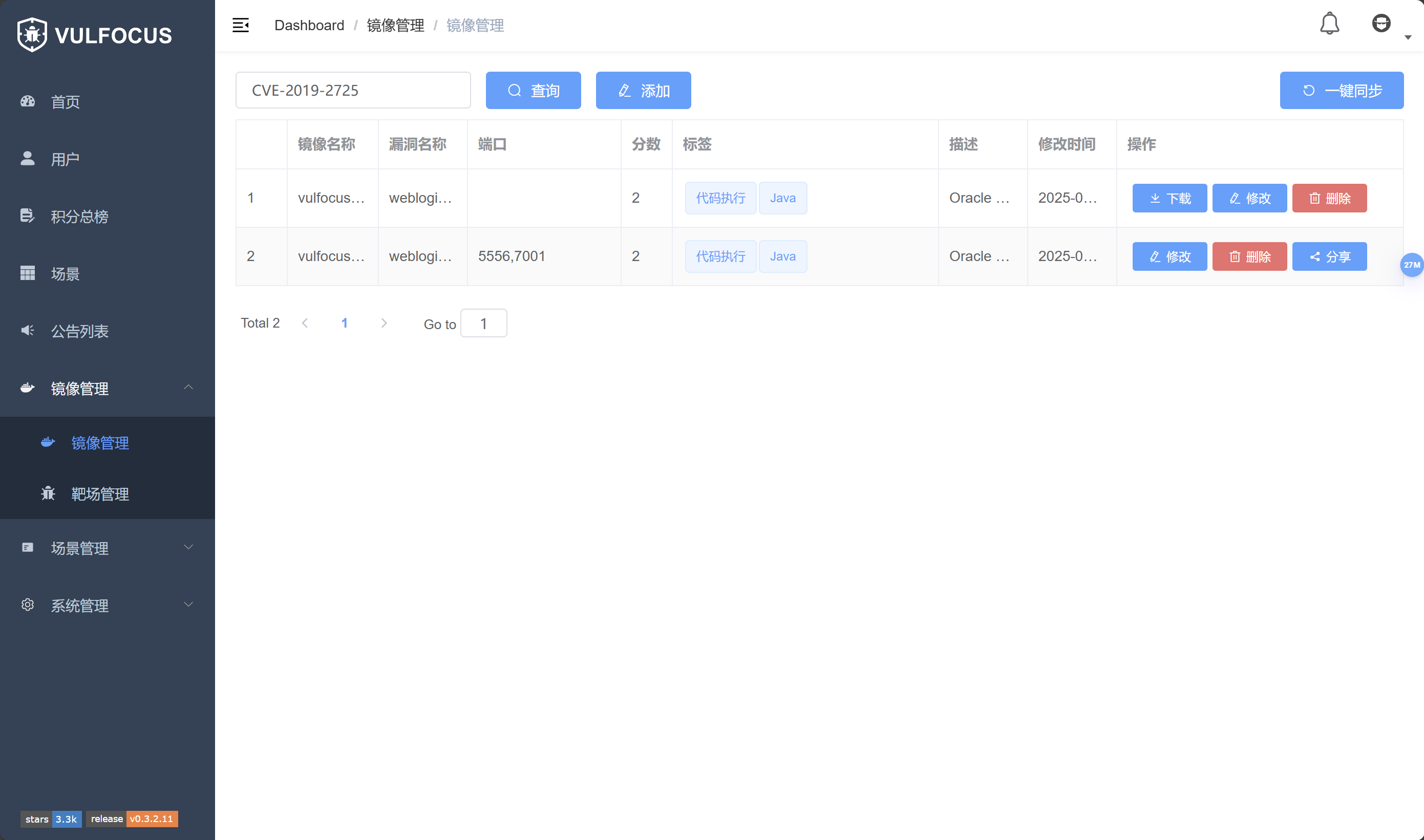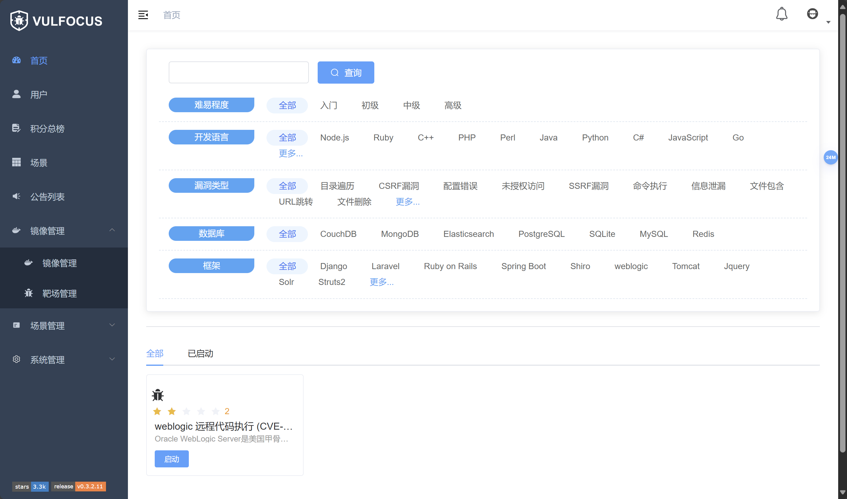 使用Vulfocus平台进行复现,进入镜像管理,搜索漏洞镜像,下载镜像。